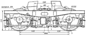 - Экипажная часть ГТ1h-002, 2014, Тележка четырёхосная, с. 11-13.