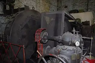 - Мощностью 0,56 МВт. Введен в эксплуатацию в 1909 году. Включает в себя двухколесную турбину, изготовленную фирмой «Бриглеб, Хансен и Ко» (Германия, г. Гота) в 1909 году, и генератор переменного тока (напряжение 80 В).