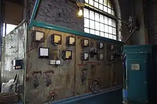 - Мощностью 0,05 МВт. Введен в эксплуатацию в 1909 году. Включает в себя турбину, изготовленную фирмой «Бриглеб, Хансен и Ко» (Германия, г. Гота) в 1909 году, и генератор переменного тока (напряжение 220 В, предназначен для питания освещения и бытовой сети завода и поселка).