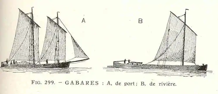 Также габарами во Франции называли плашкоуты, небольшие широкие и плоскодонные парусно-гребные суда, использовавшиеся для рейдовых нагрузок и выгрузок больших судов и для плавания по рекам[2][3]. Так к примеру термином Gabare a vase называется шаланда для отвоза грязи от землечерпалок[4].