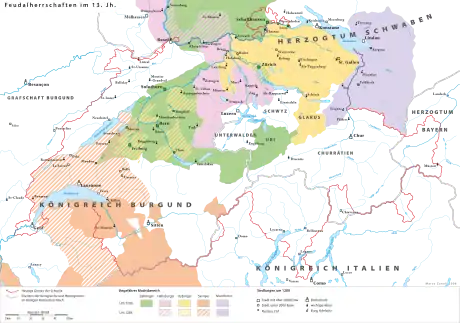 Пик укрепления Австрийского государства пришёлся на короткое время правления Рудольфа IV (1358—1365 годы), который претендовал на особый статус Австрии и её полную независимость от империи (Privilegium Maius 1358 год). В то же время ядро габсбургских владений в северной и центральной Швейцарии было потеряно и образовало самостоятельное объединение Швейцарский союз. В результате конгломерат территорий, находящихся под властью Габсбургов, постепенно трансформировался в Австрийскую монархию во главе с герцогами Австрии.
