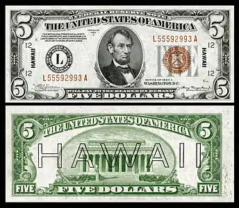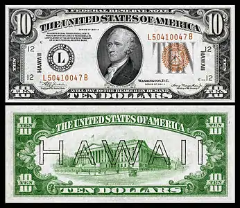 Надпечатки на деньгах делались во время Второй мировой войны после нападения Японии на Пёрл-Харбор. Цель — пометить валюту США, имевшую хождение на Гавайях, словом «HAWAII» («Гавайи») — на случай захвата японцами Гавайских островов: если бы японцы решили изъять деньги у гавайцев, полученные ими купюры не обладали бы никакой ценностью ввиду их легкой идентификации.