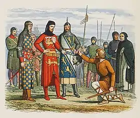 ![]() Голова Гавестона, предоставленная для подтверждения графам Ланкастеру, Херефорду и Арунделу. Иллюстрация Эдмунда Эванса из книги Джеймса Дойла «Хроники Англии с 55 г. до р.х до 1485 г.»[1] | |