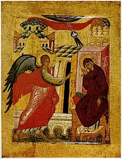 Согласно Евангелию от Луки, в шестой месяц после зачатия праведной Елисаветою святого Иоанна Предтечи Гавриил был послан Богом в Назарет к Деве Марии возвестить ей благую весть о будущем рождении по плоти от неё Иисуса Христа (Благовещение):