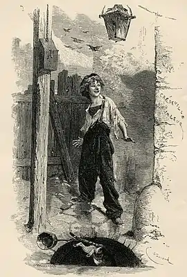 ![]() Гаврош, иллюстрация Эмиля Байяра (1862) | |