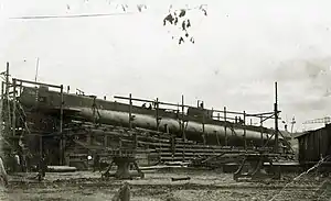 ![]() Подводная лодка «Гагара» на стапеле в Николаеве, 1916 год | |
