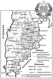 Как и в случае с бессарабскими болгарами, из состава которых гагаузы выделились к концу XIX века[2], территория компактного проживания гагаузов оказалась разделена административной границей между УССР и МССР, которая превратилась в государственную границу после распада СССР. При этом в советский период, в отличие от постсоветского, число гагаузов в УССР непрерывно росло, увеличившись с 23,5 до 32,0 тыс. человек[1]. В 1959—1989 году для гагаузов УССР был также характерен миграционный отток в МССР, а также в РСФСР, где к началу 90-х сформировалась довольно многочисленная гагаузская диаспора.
