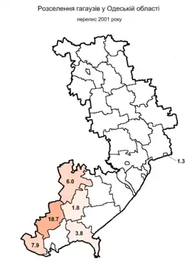 При этом в Одесской области число гагаузов увеличилось на 0,9 % между переписями 1989 и 2001 годов.