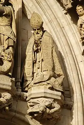 ![]() Статуя святого Гагерика на тимпане врат Брюссельской ратуши | |
