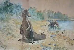 Рисунок гадрозавра, выполненный Чарльзом Найтом