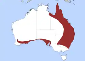 Обитает в Австралии, на о. Новая Гвинея и соседних островах.