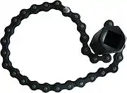 - Ременные и цепные: самозатягивающиеся ключи с цепью или ремнём из кожи или резины. Применяется для плавного вращения крупных цилиндрических деталей, к примеру, масляных фильтров двигателей внутреннего сгорания.