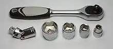 Гнездовой ключ: ручка с трещоткой, карданный адаптер, насадки