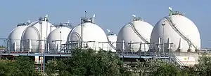 Газгольдеры постоянного объёма представляют собой стальные цилиндрические или сферические резервуары и способны хранить газ при давлении до 1,8 МПа (≈ 18 атм).