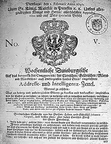 - Böning, Holger: Intelligenzblätter in Preußen, in: Bernd Sösemann (Hg.): Kommunikation und Medien in Preußen vom 16. Bis zum 19. Jh., 2002.