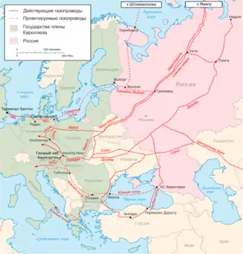 - В июле 2005 было объявлено о постепенном увеличении цен на газ для прибалтийских государств до общеевропейского уровня — 120—125 долл. В 2005 году цена 1 тыс. м³ газа составляла 92-94 долл. для Латвии (поставлено 1,3 млрд м³), 85 долл. — для Литвы (3,56 млрд м³), 90 долл. — для Эстонии (0,73 млрд м³).