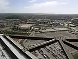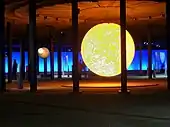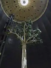 Диск газового поршня был установлен на высоте 4.50 метров. Под ним располагается круглый зал площадью 3000 квадратных метров. Две стальных лестницы ведут на верхнюю поверхность поршня, в середине которого возвышаются опорные конструкции диаметром 20 метров. Части этой конструкции используются как выставочные стенды.