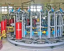 Карусельные заправочные системы производительностью до 1800 баллонов в час являются полуавтоматическими или полностью автоматическими в зависимости от типа применяемого клапана. Уровень автоматизации может быть изменен в зависимости от потребностей.