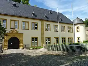 Построен в XVI веке Валентином Эхтером фон Меспельбруном (Valentin Echter von Mespelbrunn). В XVII—XVIII веках перестроен новыми владельцами — графами Шёнборн. Сейчас (2008 год) в замке размещена Франконская Сельская школа. (Franken-Landschulheim)