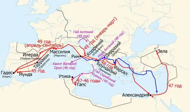 — Римская республика к началу войны↗ — действия Цезаря