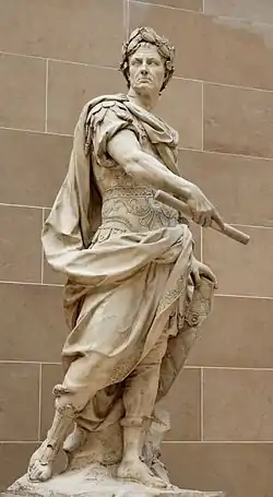 Гай Ю́лий Це́зарь (аутентичное произношение близко к Ка́йсар[5]; лат. Gaius Iulius Caesar [ˈgaːjʊs ˈjuːliʊs ˈkae̯sar]; 12 июля 100 года до н. э.[6] — 15 марта 44 года до н. э.) — древнеримский государственный и политический деятель, полководец, писатель. Консул 59, 48, 46, 45 и 44 годов до н. э., диктатор 49, 48—47 и 46—44 годов до н. э., великий понтифик с 63 года до н. э.