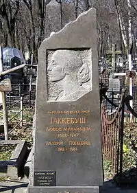 ![]() Могила Л. М. Гаккебуш на Лукьяновском кладбище в Киеве. Автор памятника - скульптор И.П. Кавалеридзе | |