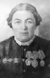 - Награждена орденами Ленина (1951), Трудового Красного Знамени (1944) и медалями.