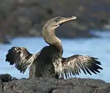 Галапагосский нелетающий баклан[1] (лат. Nannopterum harrisi) — птица семейства баклановые[2][3][4], обитающая на Галапагосских островах. Крылья сильно укорочены, в связи с чем галапагосский баклан, единственный из всего семейства, полностью утратил способность к полёту. Ранее классифицировался в роде Phalacrocorax.