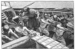 В раннее средневековье гребцы галер были волонтёрами, вольнонаёмными свободными людьми, причём они были вооружены и участвовали в бою наравне с солдатами.