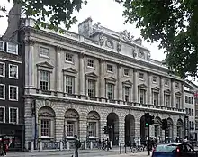 Королевская академия находилась в здании с 1780 года до переезда в новое здание Национальной галереи на Трафальгарской площади в 1837 году. Над входом в Большой зал, в котором проходила ежегодная летняя выставка Королевской академии, есть внушительная надпись на древнегреческом ΟΥΔΕΙΣ. ΑΜΟΥΣΟΣ ΕΙΣΙΤΩ («Да не войдет чужеземный к Музам»)[8].