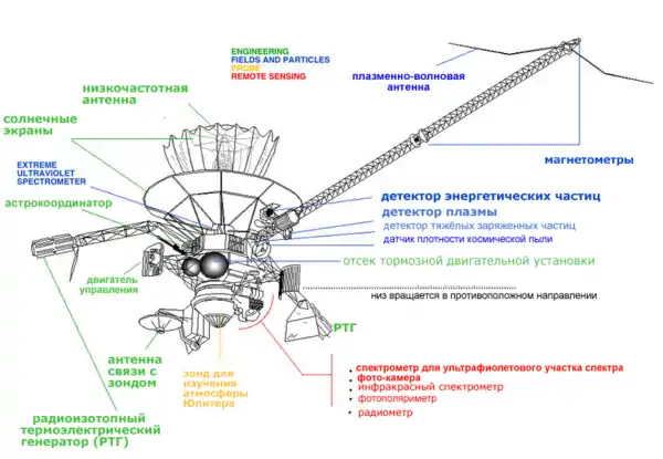 Ряд приборов (детектор частиц высоких энергий и др.) использовался, главным образом, для изучения плазмы, входящей в магнитосферу Юпитера. Детектор пылевых частиц регистрировал частицы массой от 10−7 до 10−16 грамма в космическом пространстве и на орбите Юпитера. Проводились также небесномеханические и радиоэксперименты (по прохождению радиосигнала через ионосферу и атмосферу).