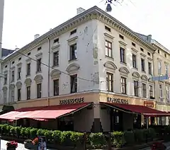 № 17. Здание на углу с улицей Братьев Рогатинцев. Построено по проекту Максимилиана фон Круса на месте двух старых каменных зданий — Домагалича и Мораковского. Последнее примыкало к городской стене, которая находилась на месте улицы Братьев Рогатинцев (которая, когда была проложена, получила сначала название «Новая улица»). В 1881 году по проекту Яна Шульца реконструированы межэтажные перекрытия и крыша. В 1896 году реконструированы лестничная клетка (архитектор Владимир Подгородецкий). В 1935—1936 годах переоборудованы витрины (архитекторы И. Менке, С. Кейли).