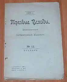 - Призадумайтесь : [О вреде алкоголя] — 4-е изд. — СПб.: Журн. «Трезвые всходы», 1914. — 8 с. — (Б-ка «Трезвых всходов»; № 2)