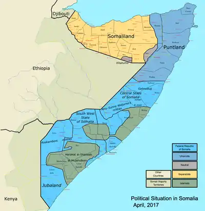 В отличие от Сомалиленда, Галмудуг, так же как и Пунтленд, не стремится к созданию независимого государства, а готов войти в будущее федеративное Сомалийское государство на правах одного из субъектов федерации.