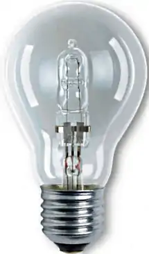 Галоге́нная (галоге́новая[1]) ла́мпа — лампа накаливания, в баллон которой добавлен буферный газ: пары галогенов (брома или иода). Буферный газ повышает срок службы лампы до 2000-4000 часов и позволяет повысить температуру спирали. При этом рабочая температура спирали составляет примерно 3000 С. Эффективная светоотдача большинства массово производимых галогенных ламп на 2012 год составляет от 15 до 22 лм/Вт.