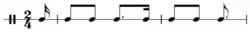 Чрезвычайно динамичен. Размер — 2/4. Мелодия состоит из четвертей или восьмых[3]. Бас отбивает обе четверти в такте, средние голоса исполняют аккомпанемент аккордами на второй и четвёртой восьмой[4].