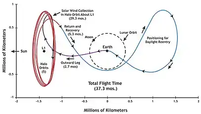 Космический аппарат Genesis, созданный в 2001 году, был выведен на ляпуновскую гало-орбиту около точки Лагранжа L1 системы Солнце — Земля. За три года аппарат совершил четыре оборота по этой орбите, после чего был осуществлён пятимесячный перелет дальностью более трёх миллионов километров к точке L2, её облёт и выход на посадочную траекторию после гравитационного манёвра около Луны[9]. Расчёт этой низкоэнергетической траектории потребовал около трёх лет работы и применения современных методов теории динамических систем.