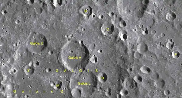 - Образование сателлитных кратеров Галуа A, L и U относится к нектарскому периоду[1].