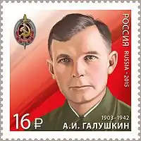 ![]() А. И. Галушкин на почтовой марке России, 2015 год | |