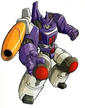 | Трансформации | робот, гаубица (G1), Танк (TF Beast Wars II), Дракон (TF Beast Wars II), танк (TF:Armada), звездолёт (TF:Cybertron, TF:Energon, TF:Prime), грузовик (фильм) |
