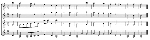 - трёхдольный метр (размер 3/2, 3/8 или 6/8),