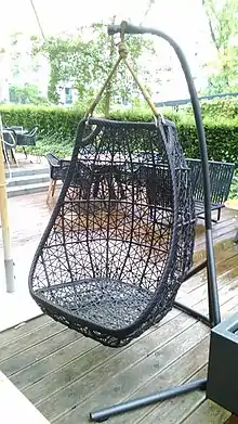 - Кресло-гамак — в отличие от горизонтально натянутого гамака, кресло-гамак висит вертикально на крюке