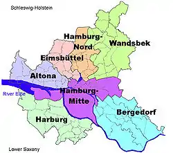 Гамбург состоит из 7 районов и разделён на 105 кварталов.