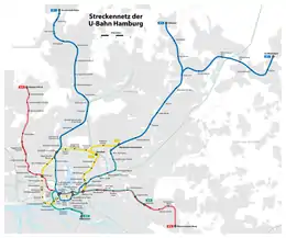 На данный момент сеть состоит из линий U1, U2, U3 и U4, при этом линия U1 обслуживает две различные ветки сети. Линия U1 отмечается на плане синим цветом, U2 красным и U3 жёлтым. Обозначения линий U1 и U2 были введены в 1966 году, через год было введено обозначение U3. Линия U4 — самая новая, введена в эксплуатацию осенью 2012 года. Она соединила Hafencity с Jungfernstieg.