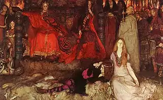 Гертруда перебивает их разговор, сообщая, что безумная Офелия утонула или случайно, или совершив самоубийство.