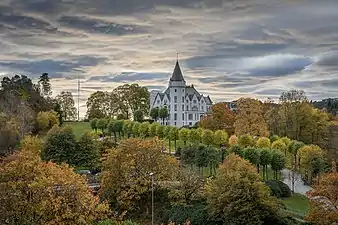 По воле Кристиана Микельсена здание спроектировано в стиле шотландских баронских усадеб архитектором Йенсом Цетлицем Монрадом Килландом. На самом деле здесь получился синтез стиля французского замка XVI века и шотландских усадеб, построенных в духе Тауэра. А кроме того в отделке преобладает классический норвежский декор, напоминающий о богатстве жителей Бергена во времена Средневековья и Ганзейского союза. Несколько различных стилей повлияли и на оформление комнат — рококо, нео-ренессанс, голландское барокко и нео-барокко.