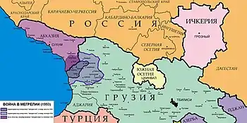 Грузинская армия, потерпевшая к этому времени поражение в Абхазии, была деморализована. Положение Шеварднадзе стало критическим, в этих условиях он обратился за помощью к народам и правительствам России, Азербайджана и Армении с просьбой предпринять срочные совместные меры по обеспечению бесперебойной работы дороги Поти — Тбилиси. Заручившись поддержкой российских миротворцев в том, что со стороны Абхазии наступление будет остановлено, правительство Шеварднадзе бросило оставшиеся верными части на звиадистов[68] и в короткие сроки сумело организовать контрнаступление. 6 ноября 1993 года была захвачена штаб-квартира Гамсахурдия в Зугдиди[69], сам он с группой сторонников укрылся в горных районах Западной Грузии[6].