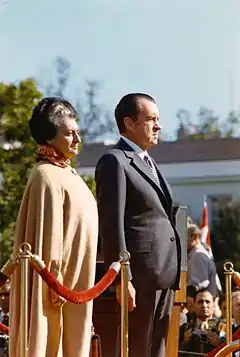 Последствия войны с Пакистаном вызвали ухудшение экономической ситуации и рост внутренней напряжённости, вылившиеся в беспорядки в стране. В 1975 году Верховный суд Уттар-Прадеша в Аллахабаде признал Индиру Ганди виновной в нарушениях избирательного законодательства на выборах в 1971 году и приказал ей уйти в отставку, с запретом политической деятельности на шесть лет. В ответ Ганди, воспользовавшись 352 статьёй конституции Индии, в июне объявила о введении в Индии режима чрезвычайного положения[15]. За время чрезвычайного положения в экономике был достигнут ряд успехов. Однако не все принятые меры были популярны, как, например, принудительная стерилизация для сдерживания роста населения. К тому же были ограничены политические свободы, закрыты все оппозиционные газеты.