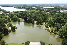 Машзее — искусственное озеро, созданное в 1934—1936 годах на месте болота. Город планировал создать здесь озеро ещё во времена Веймарской республики (1918—1933), но тогда проект не был осуществлён. Инициативу подхватили нацисты в идеологических целях, провозглашая такие лозунги, как культ коллективных мероприятий, народ, обретающий счастье в труде, здоровый досуг. На берегу озера возвышаются колонна и скульптура, напоминающие о той эпохе. В основании колонны угрожающий немецкий орёл и пустой круг, ранее украшенный фашистской свастикой. Летом каждый час отходит прогулочный катер. Возле Машзее находится кладбище советских военнопленных, на котором установлен мемориал, автором которого является скульптор Николай Мухин-Колода[7].