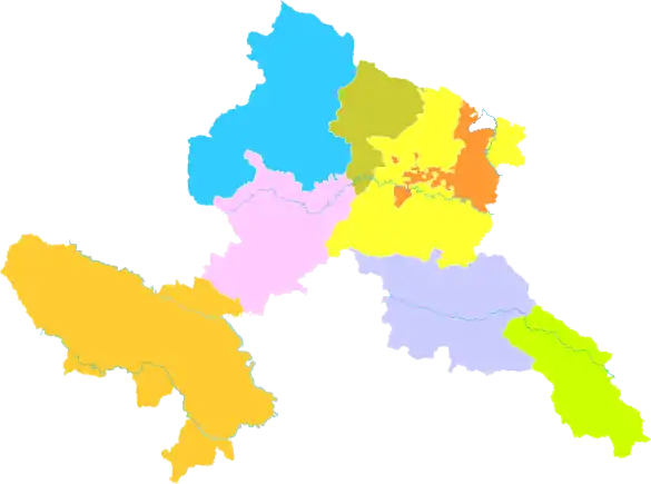 | Уезд | Джугчу | 舟曲县 | Zhōuqū xiàn | འབྲུག་ཆུ་རྫོང་། | 'brug chu rdzong | 3010 | 140 000 |